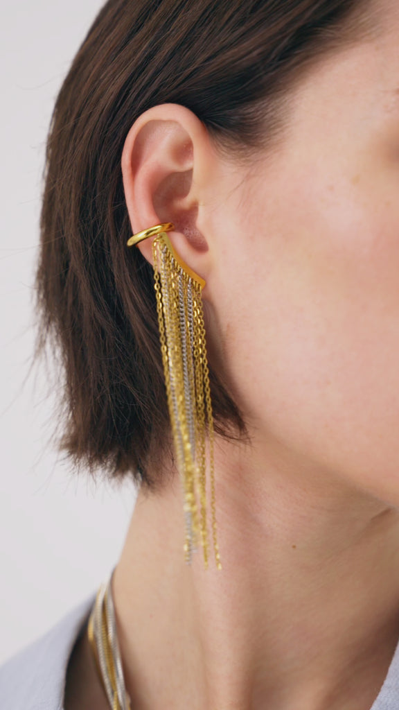 ORECCHINI EARCUFF CON FRANGE LUNGHE ORO\ARG