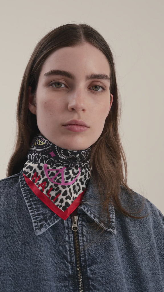 Foulard elegante in tessuto leggero e setoso, perfetto per aggiungere un tocco sofisticato a qualsiasi outfit. Ideale da indossare al collo, tra i capelli o legato alla borsa, dona un’eleganza senza tempo e completa con stile sia look casual che più formali.