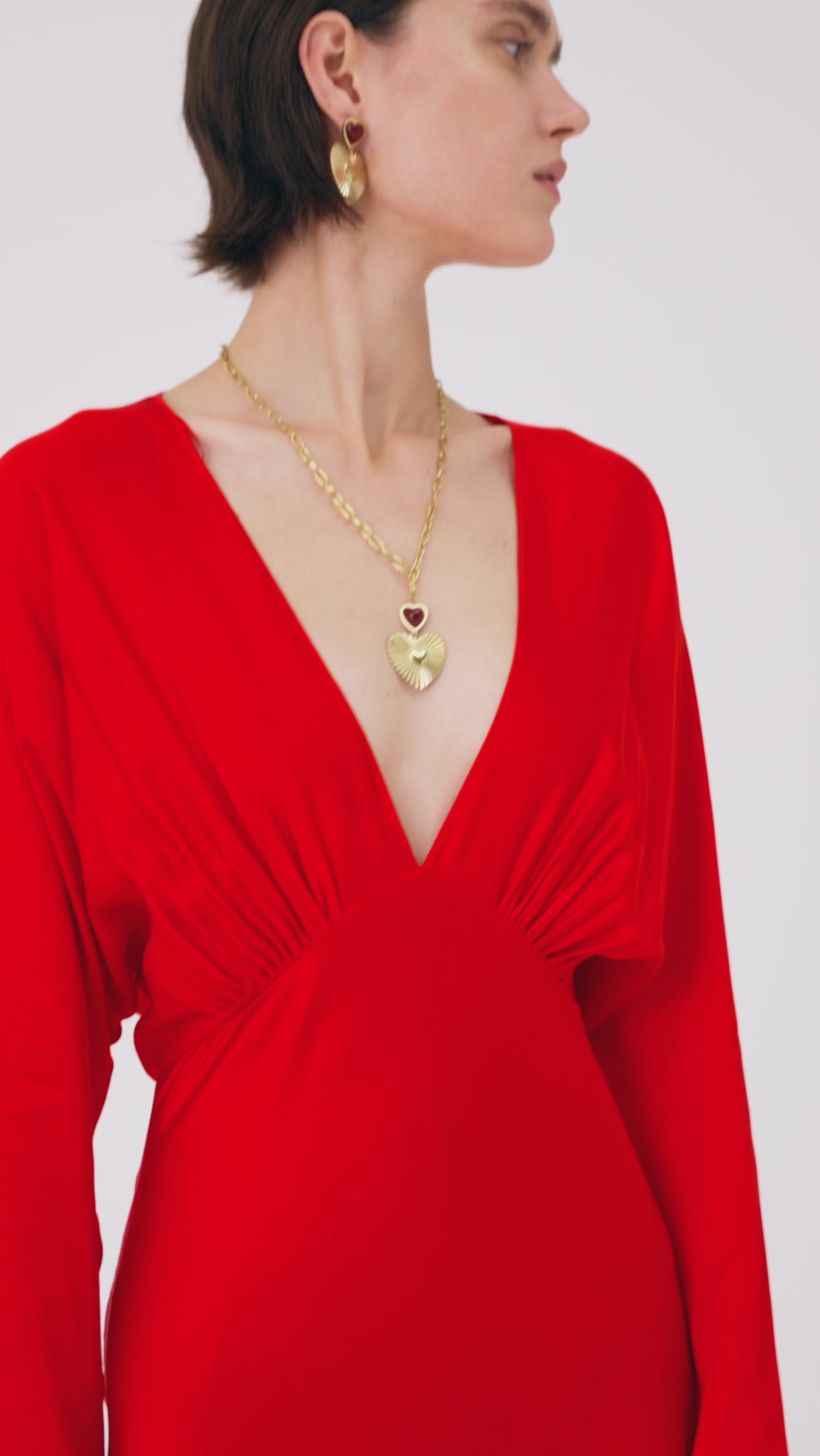 SACRED HEART NECKLACE WITH STONE RED/GOLD