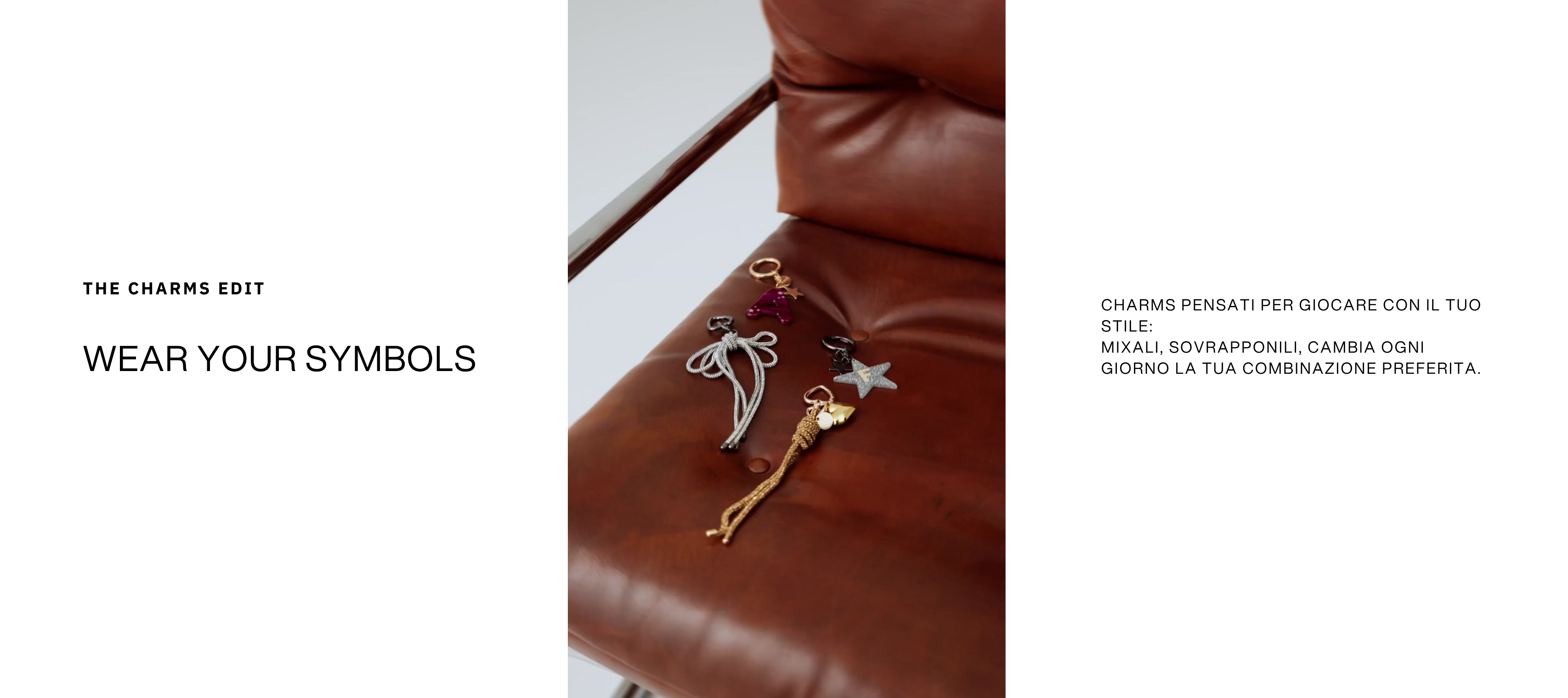 The Charms Edit – Charms per borse e gioielli Nalì. Benvenuta in The Charms Edit, la collezione firmata Nalì dedicata al mondo dei charms, dove stile, creatività e personalità si incontrano. Una selezione esclusiva di ciondoli per borse e gioielli componibili pensata per chi ama personalizzare ogni dettaglio del proprio look.Dettagli che raccontano chi sei. Ogni charm Nalì è studiato per esprimere un’emozione o un tratto della propria personalità. Dalle forme iconiche ai simboli più moderni, fino ai dettagli con cristalli e finiture dorate o argentate: ogni pezzo diventa un piccolo segno distintivo capace di valorizzare il tuo stile.Charms per borse. Personalizza la tua borsa con i charms Nalì, perfetti per aggiungere un tocco unico e distintivo. Facili da applicare, i nostri charms decorativi si adattano a manici, tracolle e anelli metallici, trasformando ogni accessorio in un pezzo originale e riconoscibile. Gioielli componibili e mix & match Scopri la linea di gioielli modulari Nalì, pensata per creare combinazioni sempre nuove. Collane, bracciali e orecchini si arricchiscono di charms intercambiabili, permettendoti di giocare con forme, colori e simboli. Un modo semplice e creativo per reinterpretare ogni giorno il tuo stile. Originalità, colore e versatilità The Charms Edit è una collezione dinamica, colorata e versatile. Ideale per chi ama reinventarsi, offre infinite possibilità di abbinamento: dai charm minimal e raffinati per un effetto elegante, ai modelli più vivaci e divertenti per uno stile contemporaneo e disinvolto. Acquista online su Nalì Scegli i tuoi charms preferiti sul sito ufficiale nalishop.it. Approfitta della spedizione gratuita sopra i 50 euro, della consegna rapida in tutta Italia e del servizio clienti dedicato. Scopri le nuove capsule e lasciati ispirare dalle ultime tendenze Nalì.
