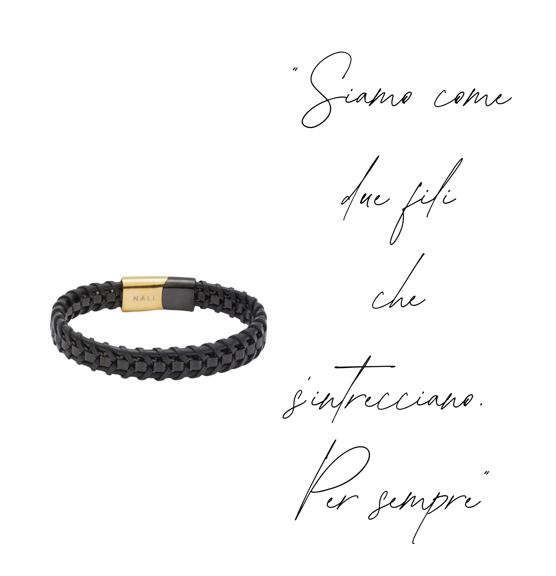 BRACCIALE INTRECCIATO PELLE NERA+AC.INOS