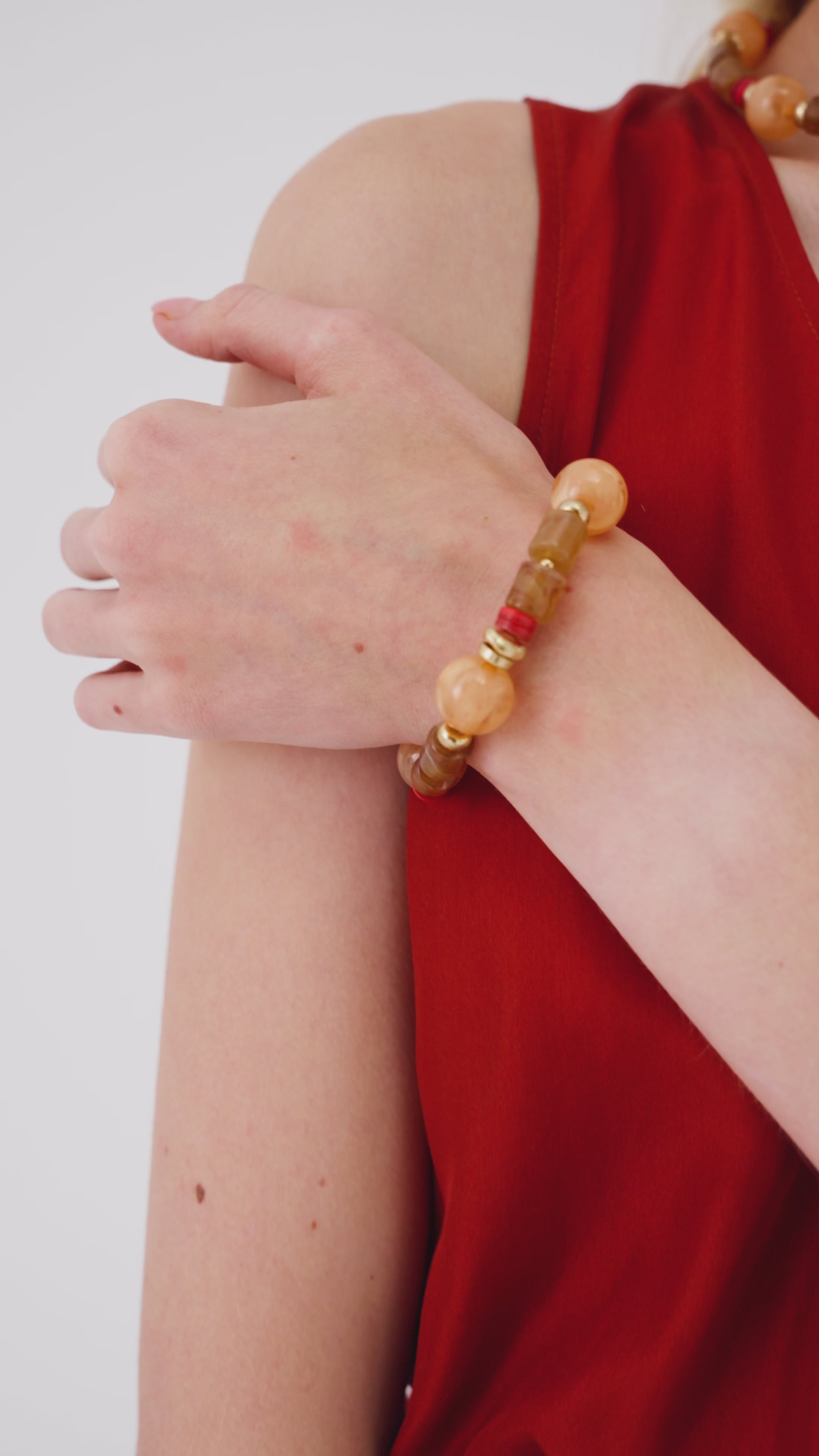 50% ACRILICO, 25% CONCHIGLIA, 15% PLASTICA, 10% LEGA DI ZINCO