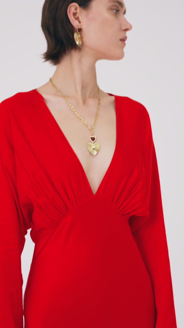 COLLANA CUORE SACRO CON PIETRA ROSSA ORO