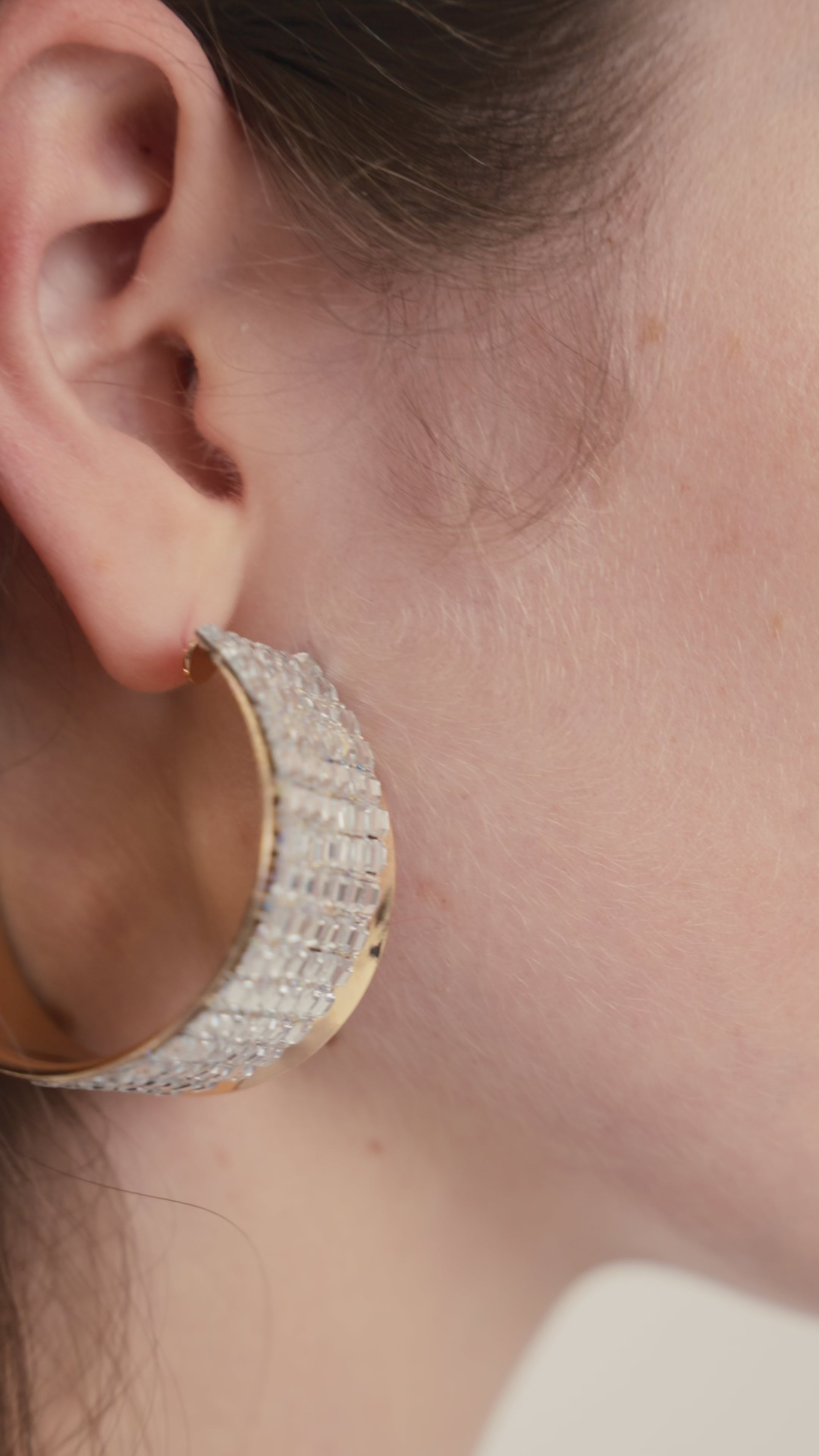Orecchini a fascia con lavorazione a rete e dettagli luminosi, un accessorio versatile e contemporaneo che completa ogni look.