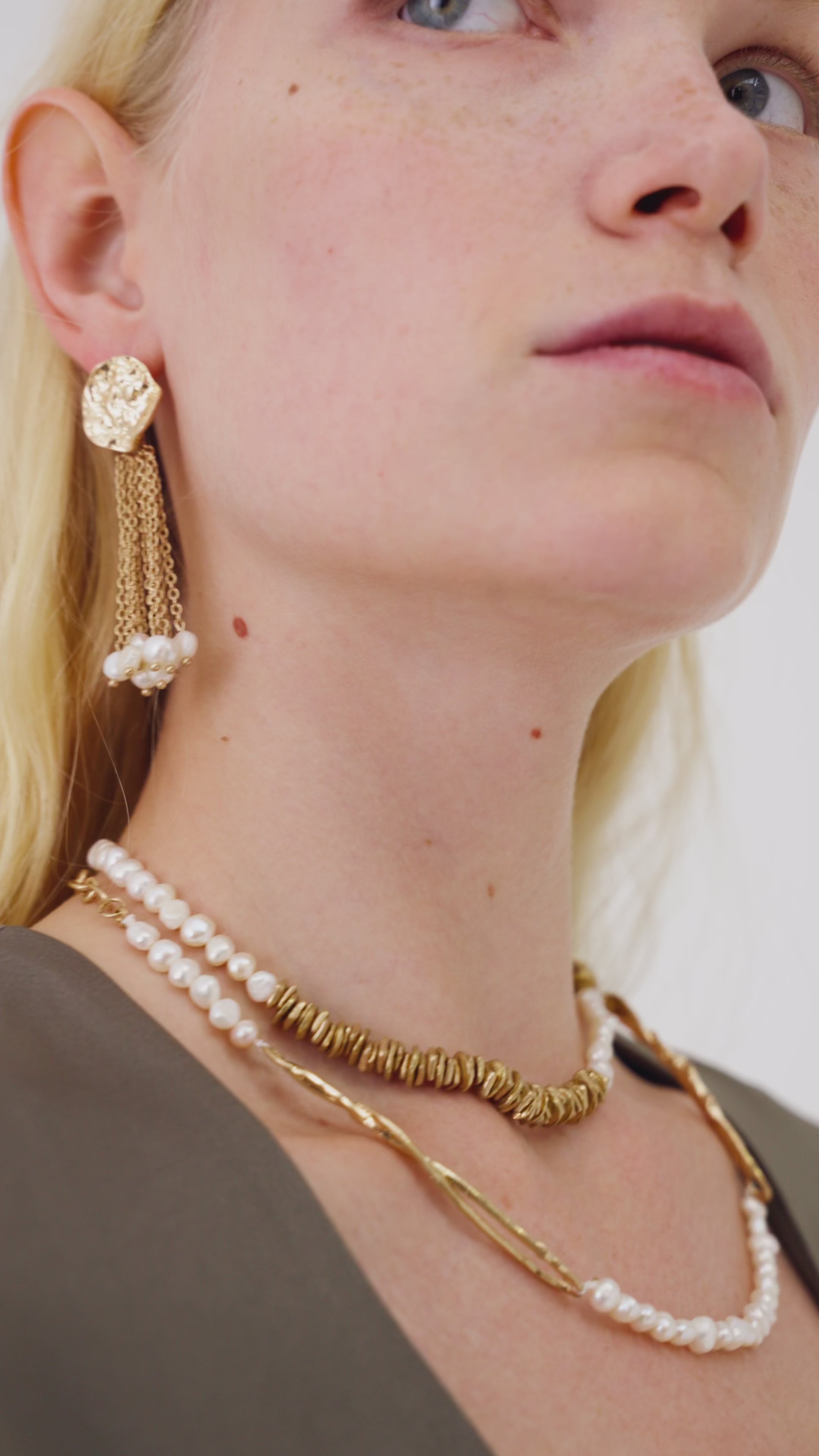 Orecchini donna pendenti con struttura articolata e dettagli decorativi lavorati. Un gioiello sofisticato che unisce design contemporaneo e artigianalità, pensato per esaltare lo stile personale. Ideali per chi cerca orecchini eleganti, gioielli di qualità e accessori moda moderni.